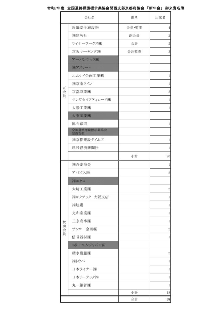 令和8年1月30日(金) からすま京都ホテルにて、 全国道路標識・標示業協会 関西支部 京都府協会の新年会を行いました。